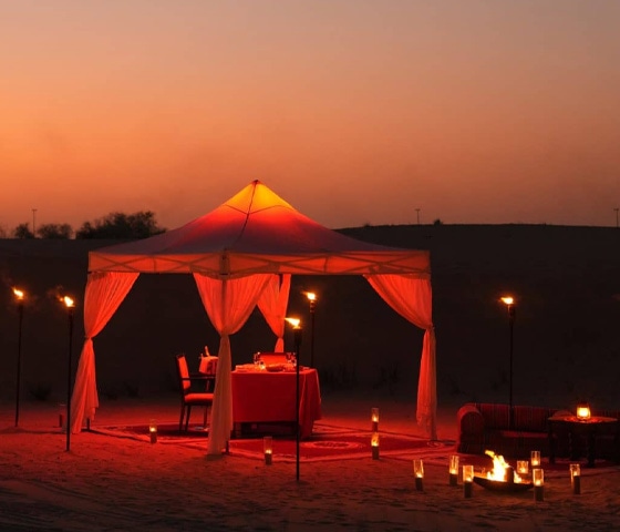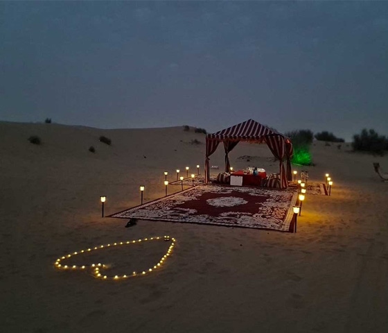 Yes, guests can provide their food preferences at the time of booking. Guests will be served with both vegetarian and non-vegetarian food options at the dinner experience in the desert. Thus, you and your loved ones will surely love this amazing candlelight dinner on the dunes.