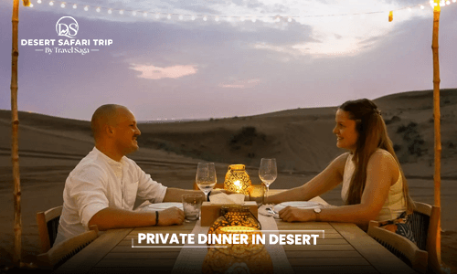 Unlike other shared safaris, a private dinner in the desert is set up for you and your group, so you can enjoy the calm desert atmosphere and live entertainment in a more personal way. The evening includes welcome drinks, cultural shows, and time to soak in the peaceful surroundings, making it a special experience for celebrations or quiet moments in the desert. So, make the bookings for a private dinner in desert on the www.dubaidesertsafaritrip.com or dial +971 50 3399740 to make the reservation for you!