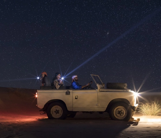 - Once the sun goes down, explore the desert in a vintage 1950s Land Rover.