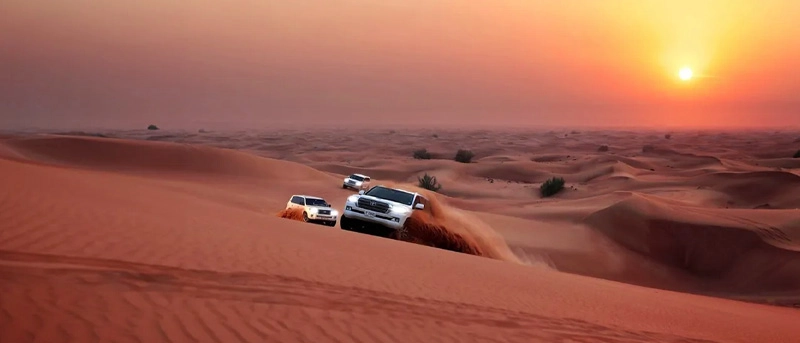 The transfers and Dune Bashing are in powerful 4-wheel drive SUVs. Also, the most commonly used one is the Toyota Land Cruiser.